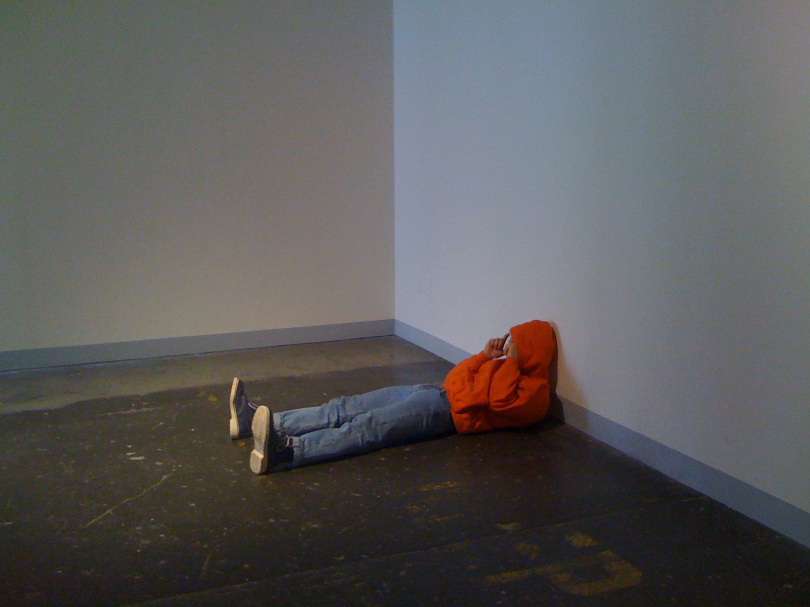 Five one-hour performances, over five weeks. My friend and classmate David was working as a dancer for Tino Sehgal. For each performance, I went to the gallery and read our homework out loud to him while he was performing Tino's "Instead of allowing some thing to rise up to your face dancing bruce and dan and other things" (2000). Performed at the Wattis Institute.